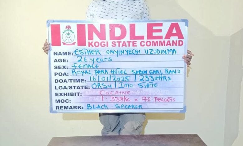 Her lid was blown open when NDLEA operatives on patrol along Okene-Lokoja highway in Kogi state on Thursday 16th January intercepted 31-year-old Cosmas Okorie in a commuter bus coming from Lagos enroute Kano. Inside his black polythene bag was an audio speaker, which was used to conceal 76 pellets of cocaine weighing 1.340 kilograms, which he was going to deliver to Esther in Kano. A swift follow up operation in Kano led to the arrest of the female nursing university student later same day.