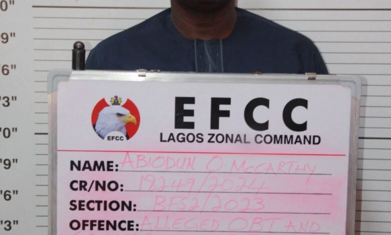 The Lagos Zonal Directorate 1 of the Economic and Financial Crimes Commission, EFCC, on Thursday, July 31, 2025, arraigned one Abiodun Maccarthy before Justice Mojisola Dada of the Special Offences Court sitting in Ikeja, Lagos,