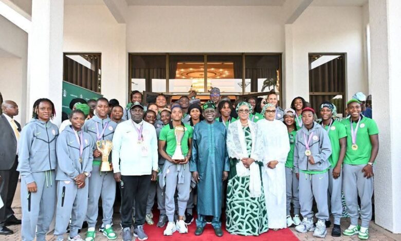 TINUBU REWARDS SUPER FALCONS PLAYER’S WITH $100K EACH ,CONFERS NATIONAL HONOUR ON PLAYERS ,DONATE HOUSES